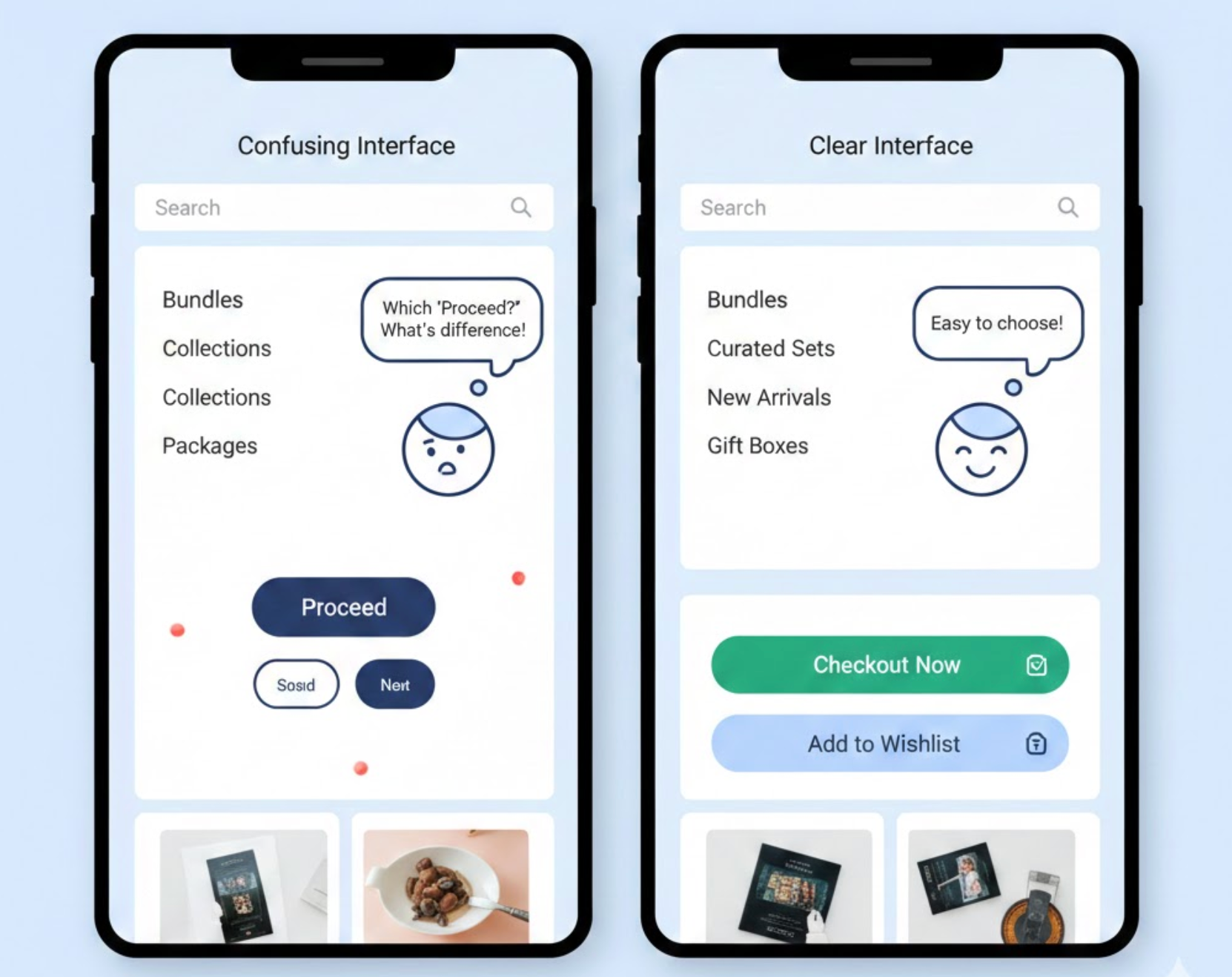 Because most shoppers skim rather than read carefully, interface copy should be structured to communicate key points at a glance.