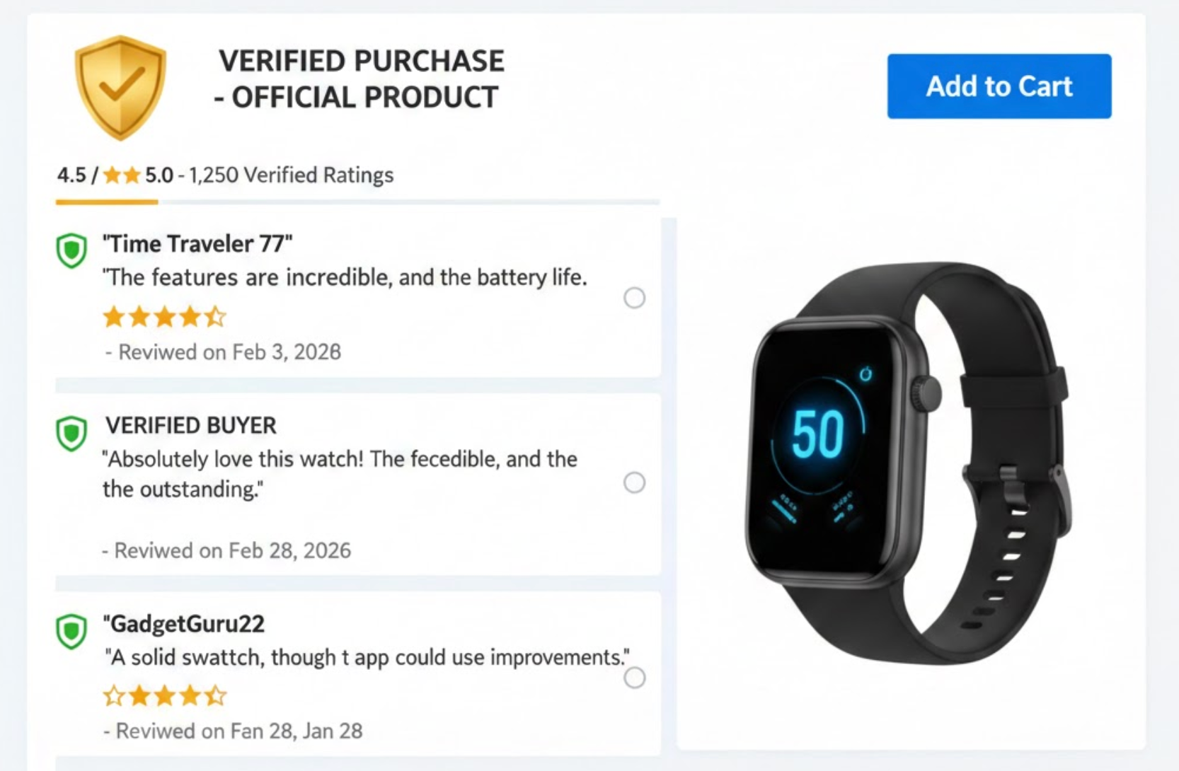 A mix of positive and critical verified reviews creates realism. Shoppers feel they are seeing honest opinions rather than curated promotion.